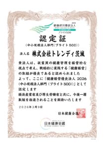 この度、「健康経営優良法人2026(中小規模法人部門(ブライト500))」 に認定いただきました。